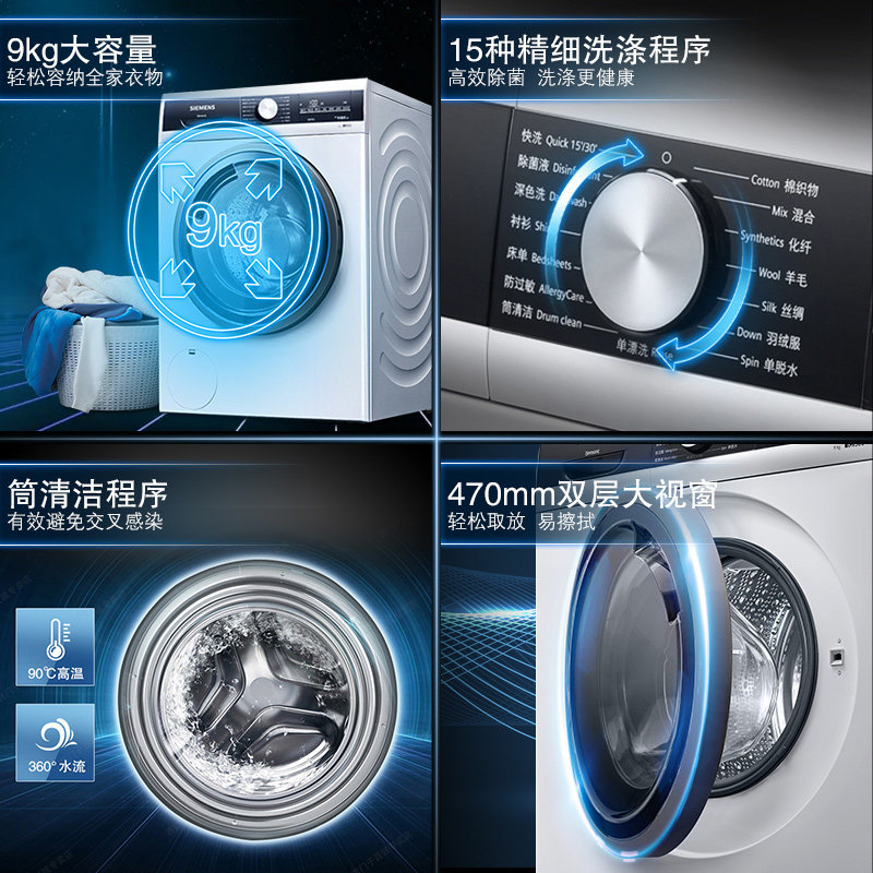 Siemens washing machine 9KG fully automatic frequency conversion drum Home Stain Removal Official Flagship WG42A1U80W
