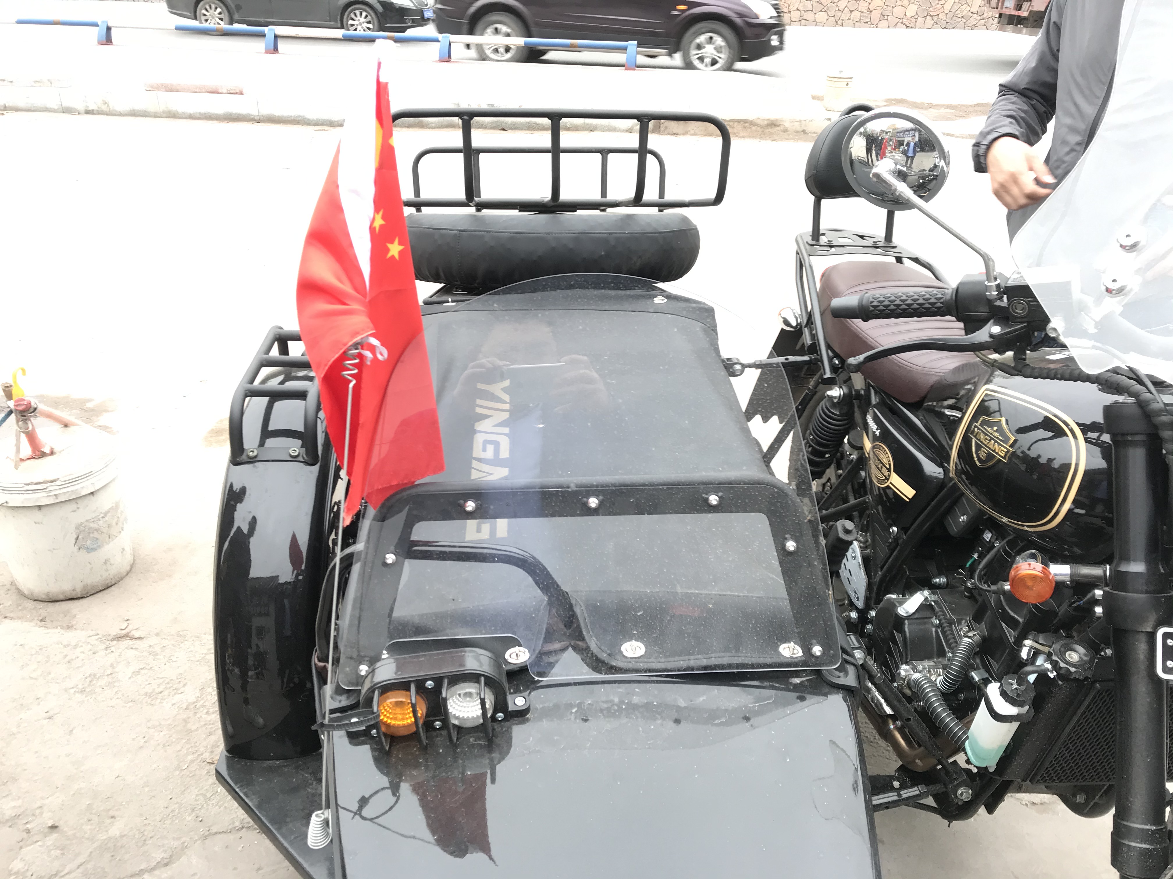Silver steel road hummer YG300B-A side three-wheeled motorcycle original modified accessories Shelf backrest windshield