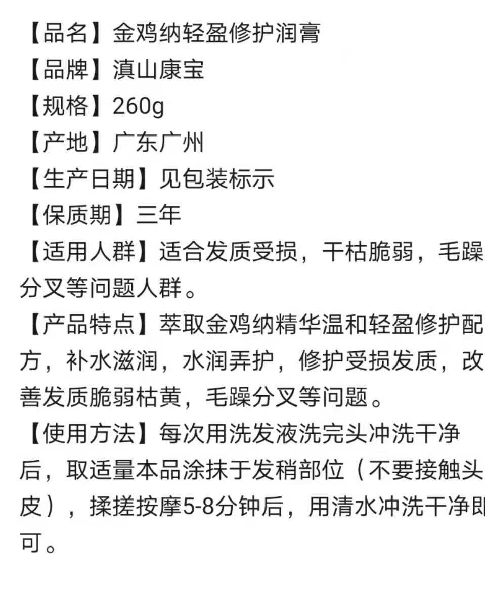 Golden Chicken Natulet Light Care And Moisturizing Cream Silk Slip Repair Cream Nourishing Soft and smooth bifurcated hairy and damaged bronzed hair care