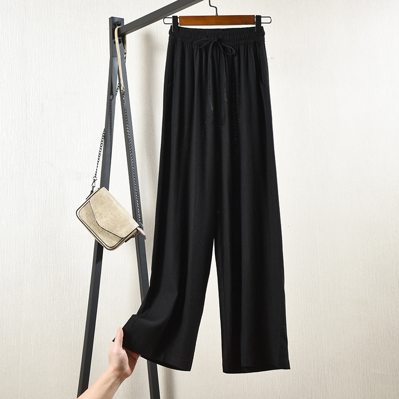 Linen wide pants woman 2022 springtime high waist new tug long pants loose 90% cotton numb Sensation Straight Drum Woman