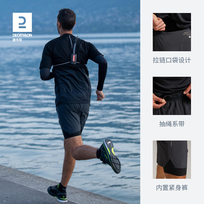 Decathlon Running Shorts Men's Summer Quick DryIng Jersey Sports Kit with lined Marathon Three-Point Pants MSGS