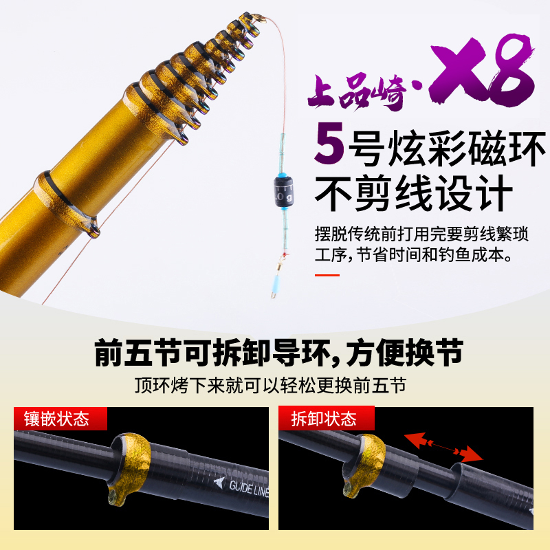 Dream Bach monopoly X8 front hit rod, grain wheat, fishing rod, three positioning, no cutting line, ultra-light ultra-hard 19 adjustment stream rod fishing