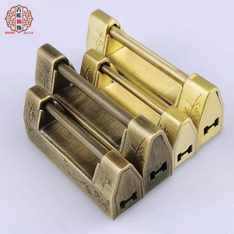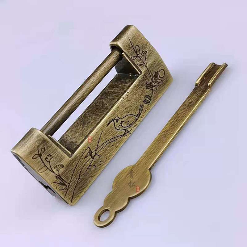 Chinese Antique Copper Padlock Cross Ancient Mini Carving Ancient Copper Lock Ancient Wooden Case Old-style Illustrated Little Lock