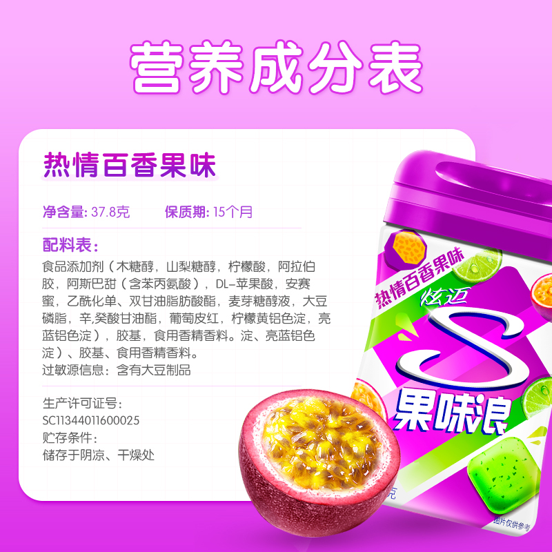 (Wang Yibo endorsement)Xuanmai fruity wave crispy large grain bottled sugar-free chewing gum does not gain weight snacks