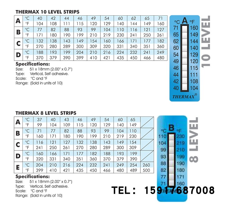 British TMC Temperature Beauty Thermax 8 horizontal bar temperature sticker octag A octag B 8 gg C