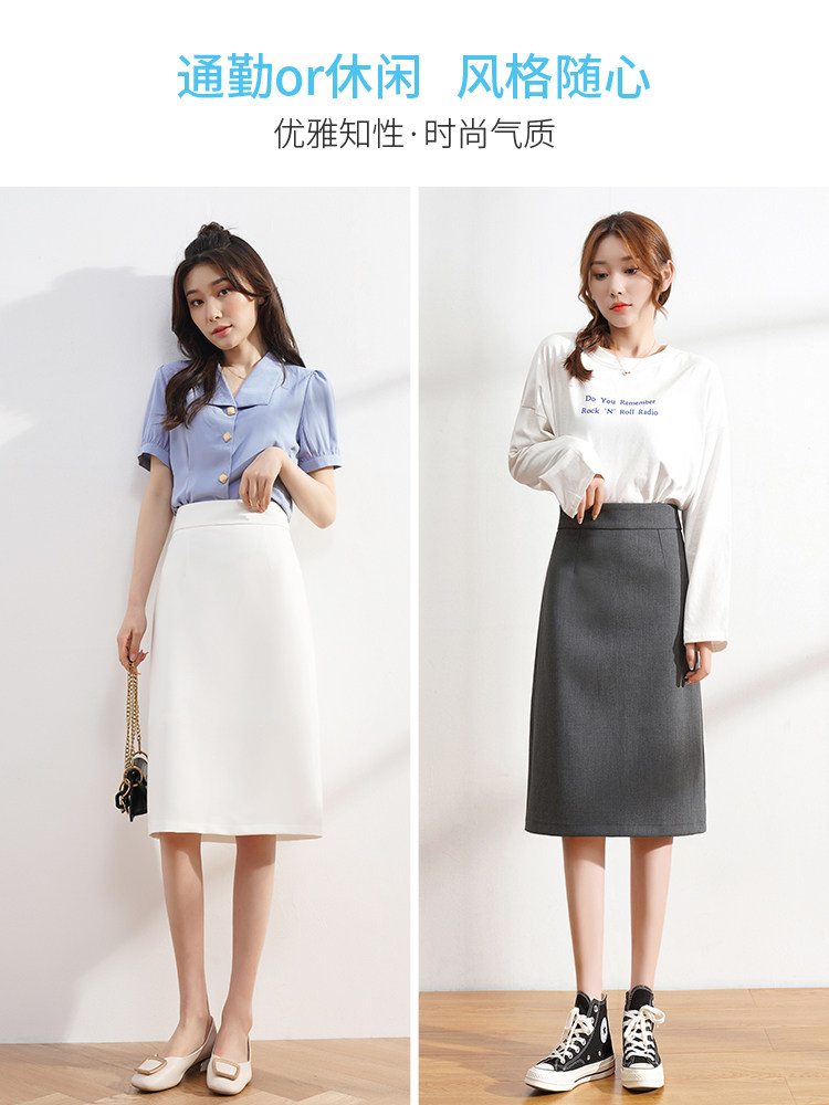 a word dress summer medium long version women 2022 new high waist career step bag hip skirt grey half body dress female summer dress