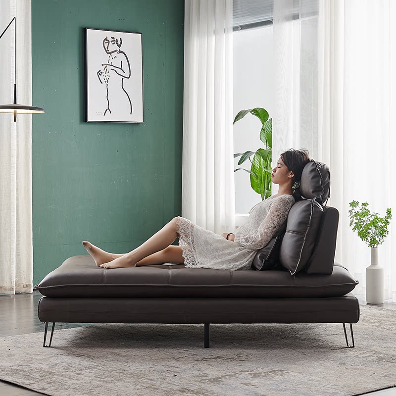 Chaise lounge sofa leather toffee chair bedroom beauty princess couch Nordic single chaise bed lazy balcony lounge chair