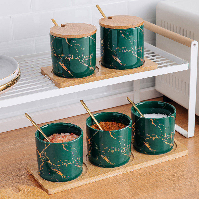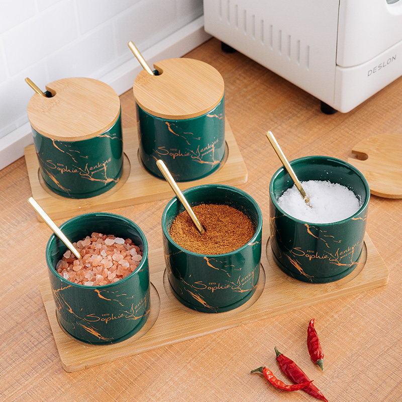 Dark green seasoning jar single dark green seasoning jar two-piece set with wooden support dark green seasoning jar three-piece set with wooden support dark green oil bottle single small dark green oil bottle single