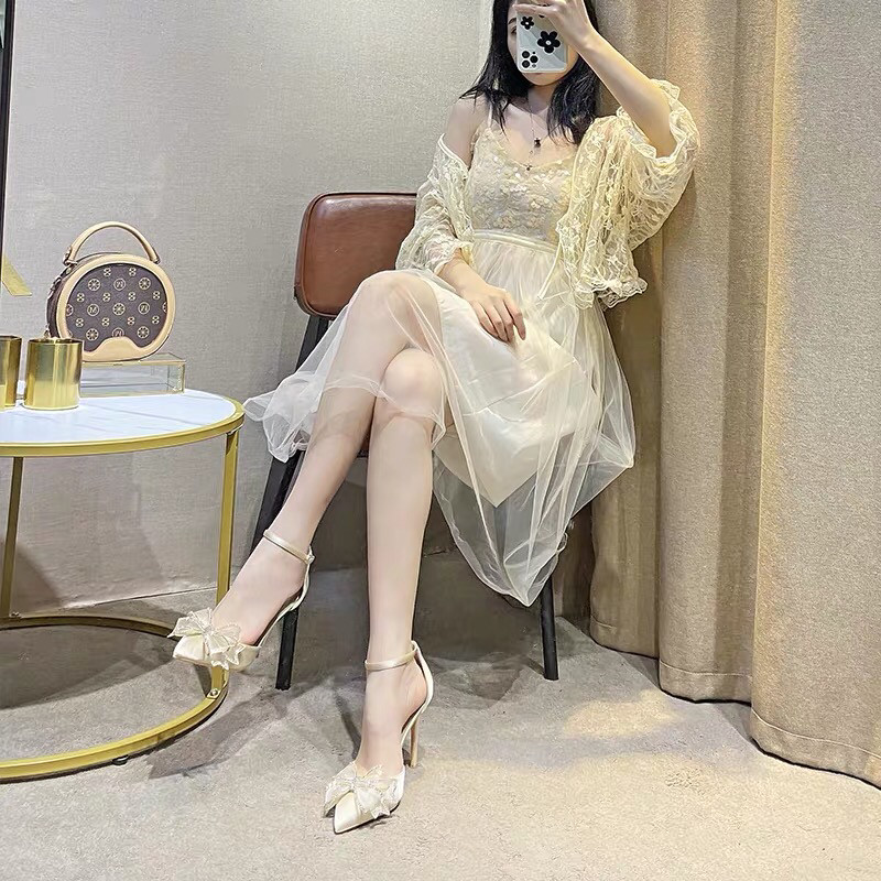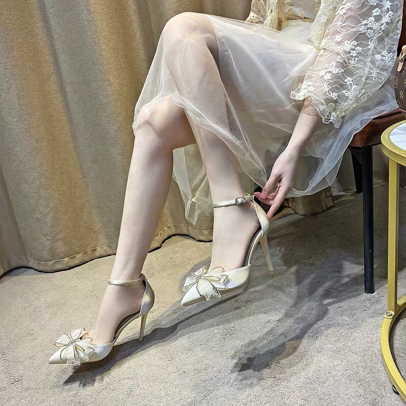 GAIAIER famous Princess Wind ~ 2022 High-end Customized Water Drill Butterfly Knot 100 lap high heel women's single shoes