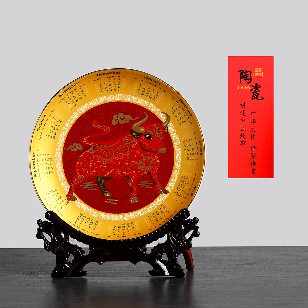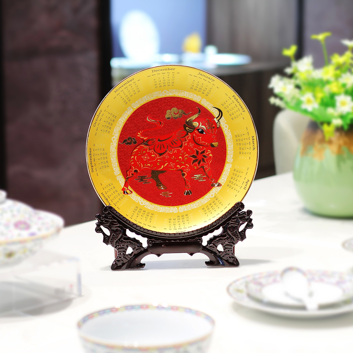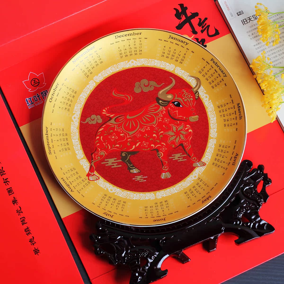 Red Leaf Ceramic Jingdezhen Porcelain Bull Dish New Year Holiday Sending Gift Canon Decorations New Home Jo Relocation Display