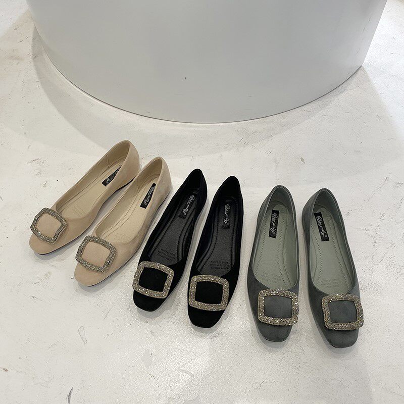 ITSK shoes women's singles shoes square toe shallow flat bottom rhinestone soft soled beanie shoes driving women's shoes