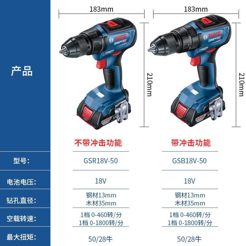 Bosch rechargeable electric drill GSR18V-50 lithium electric screw screwdriver rechargeable electric drill screwdriver brushless motor