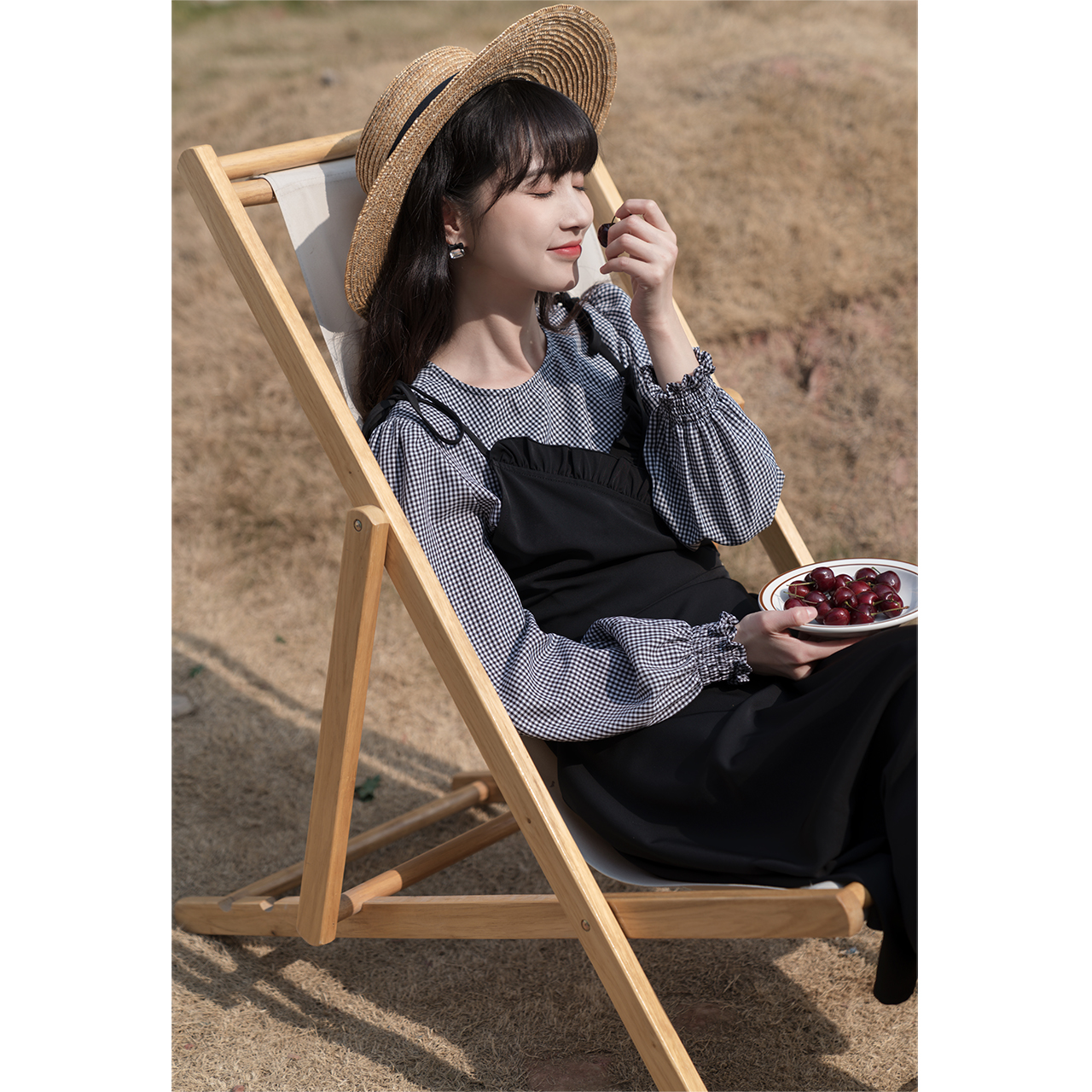 Plaid top Plaid top black suspender skirt black suspender skirt Plaid top short-sleeved plaid top short-sleeved