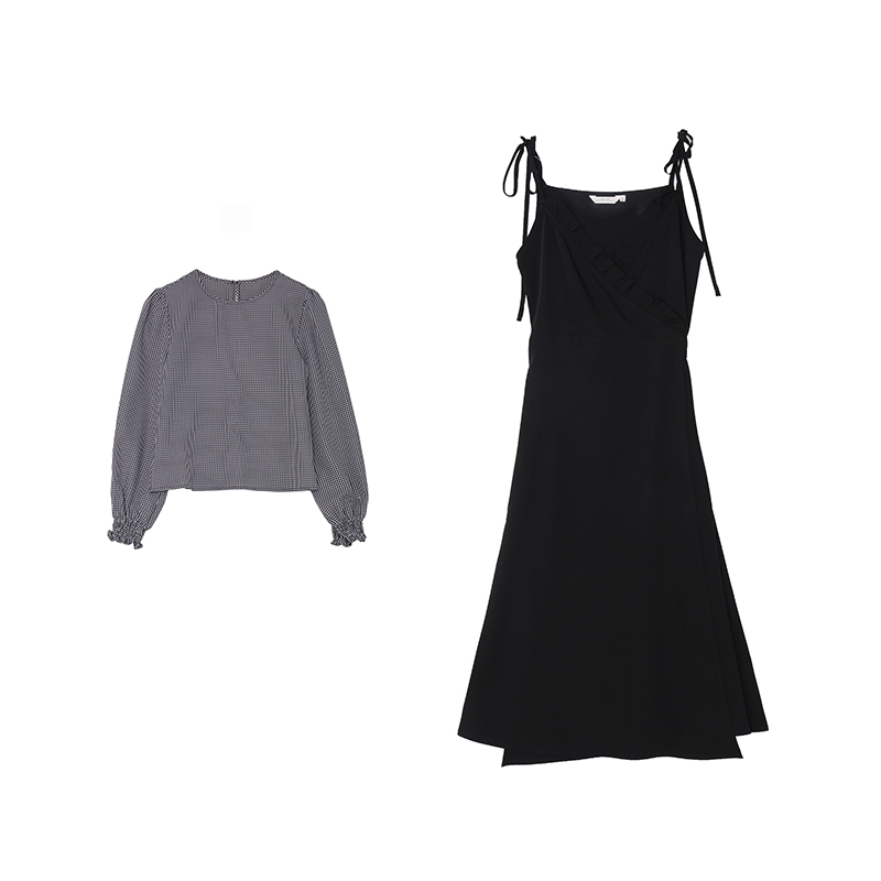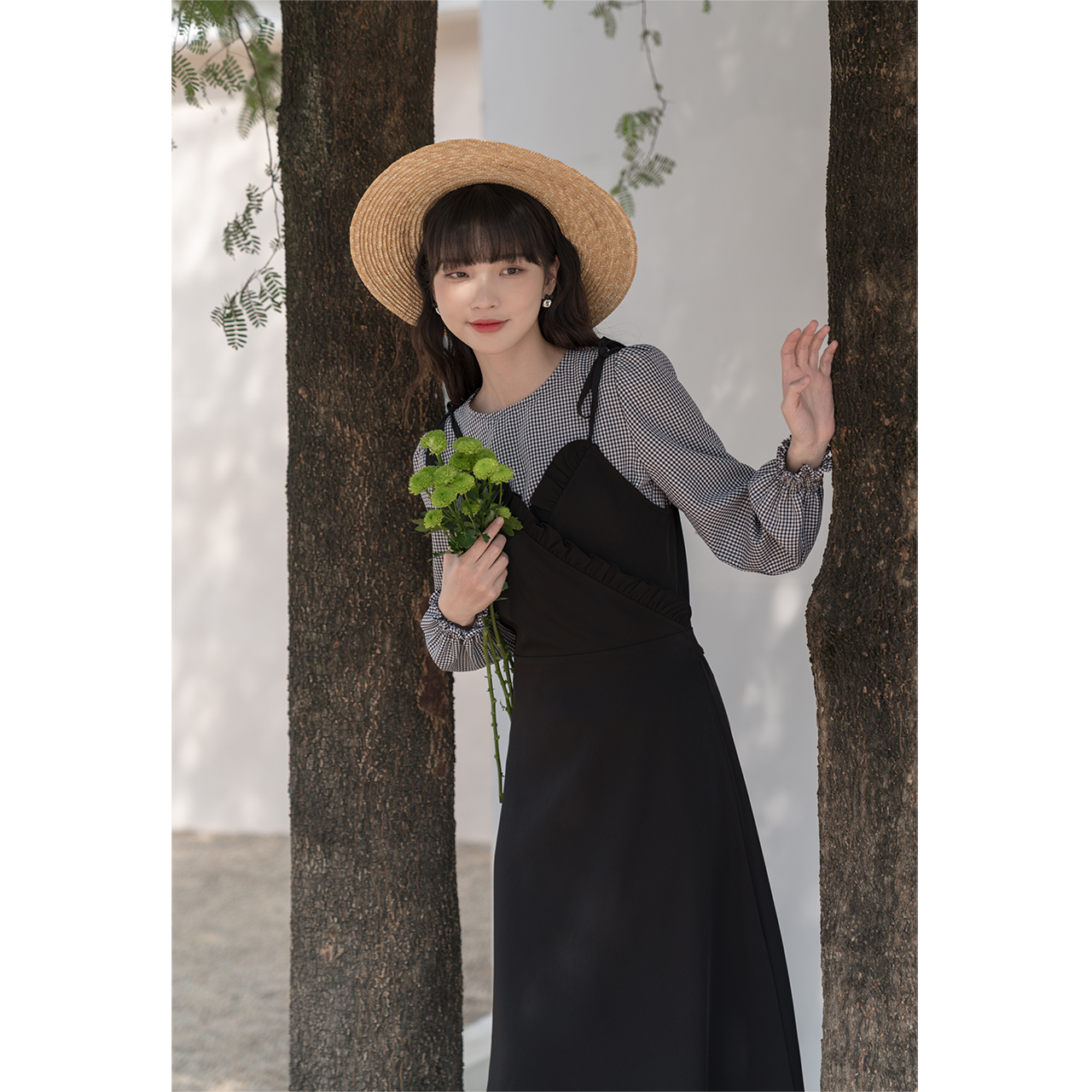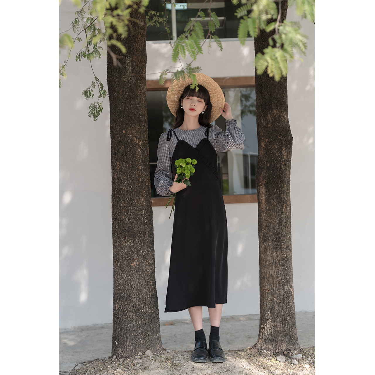 Lu Xiangnan black suspender two-piece dress autumn 2022 new femininity autumn slim skirt