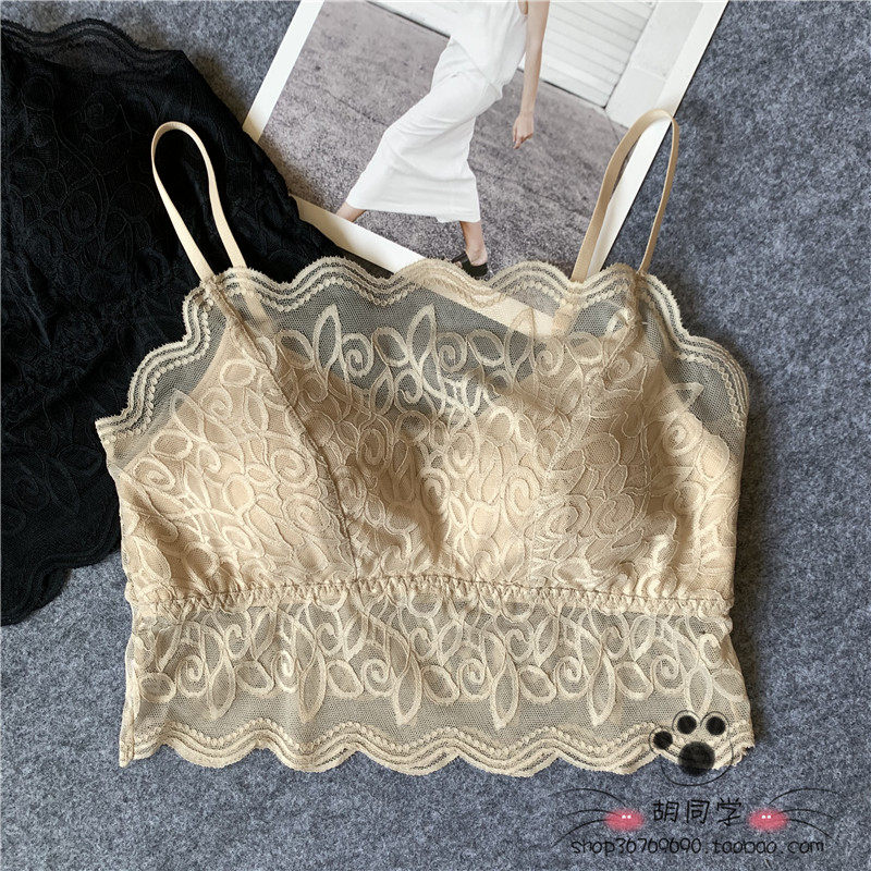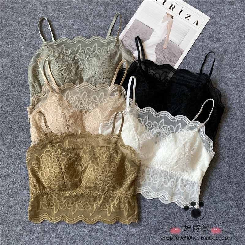 Sexy Lace Anti-Walking Light Beating Bottom Shoulder Strap Chest Cushion Wrap Chest short Pure Color Inner lap harness Breasted Bra Woman