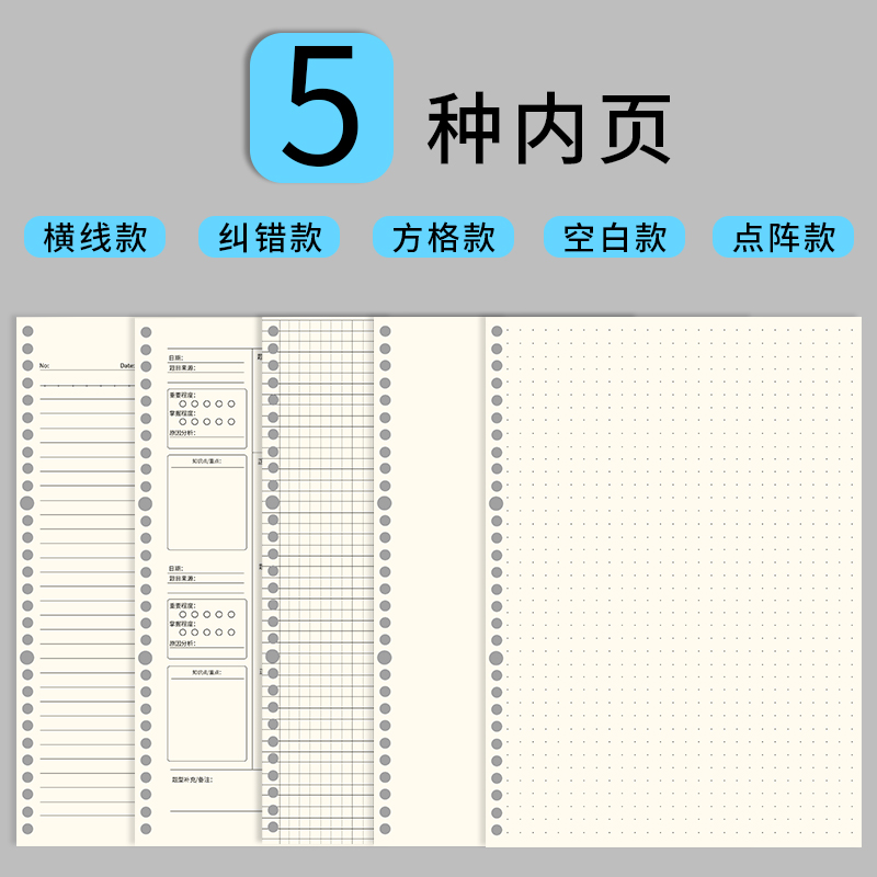 Main paper products loose-leaf notebook subtete core A5 20 holes B5 26 holes A4 30 hole hand ledger detachable replacement laser error correction grid blank crossline misocote office student notepad