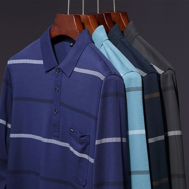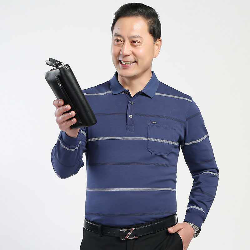Dad Dress Long Sleeve T-shirt Middle-aged Men T-Shirt Polo Shirt Middle-aged Seniors Spring Autumn Thin on clothes 40-year-old 50