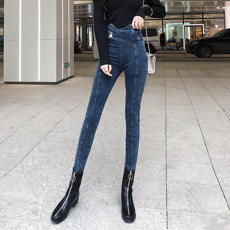 Korean Version High Waist Jeans Woman 2021 Fall new elastic large size Size Pencil Pants Trousers slim fit Skinny Smoke Tubes Pants