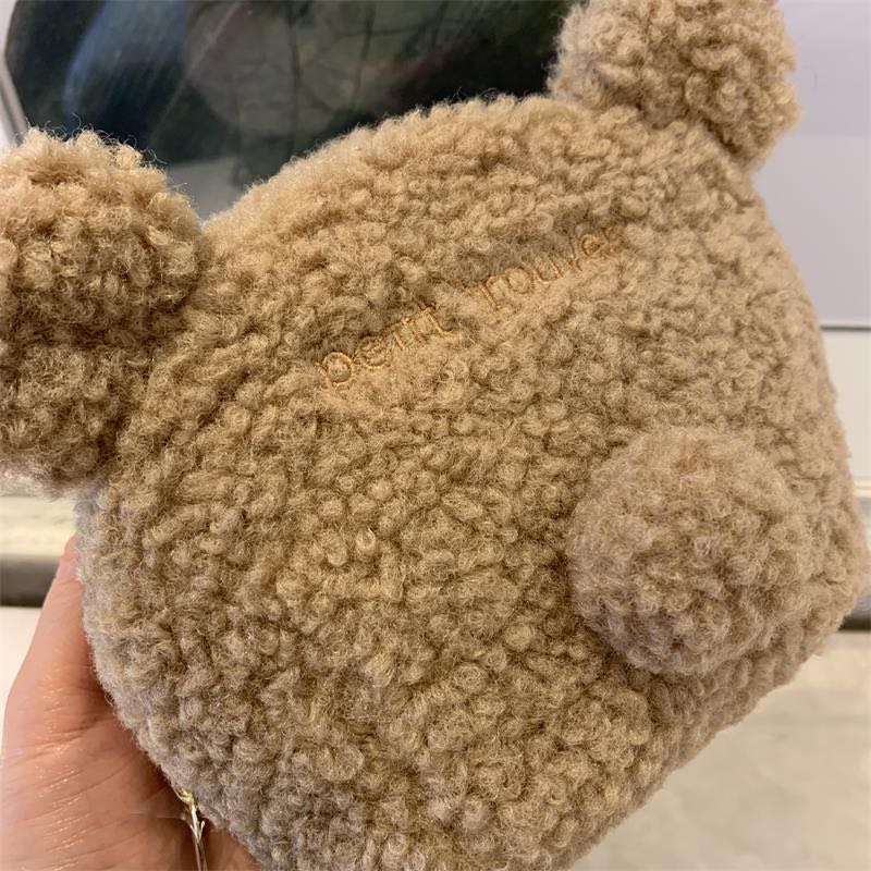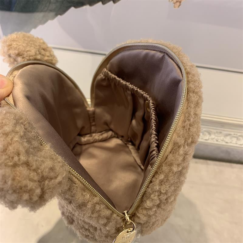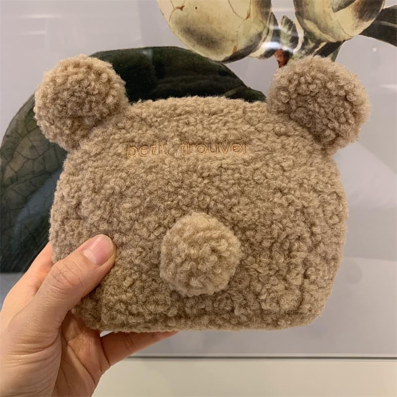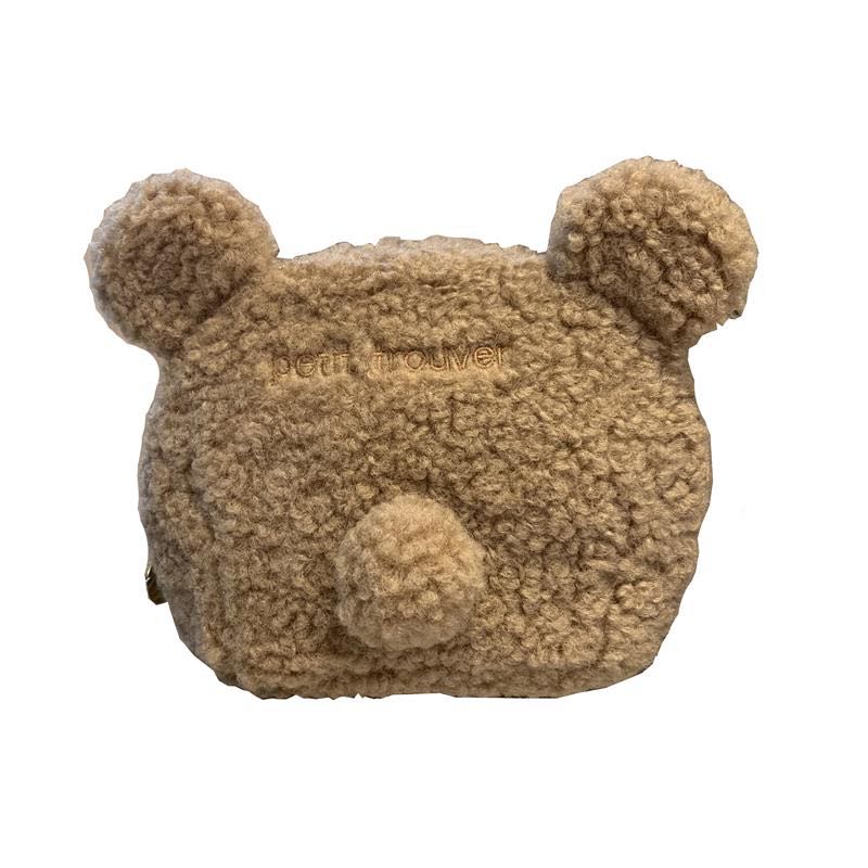 Petit Trouver cute little brown bear cosmetic bag storage bag sundry bag bag half round bear ear bag