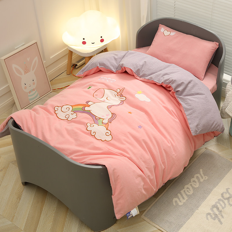 Class A embroidery kindergarten quilt three-piece set for entering the kindergarten children's quilt pure cotton cotton washed cotton nap six-piece set