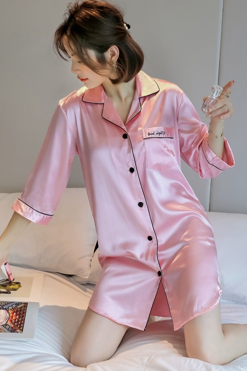 New Sleeping Dress Woman Summer Short Sleeve Shirt Style Sexy Dress Ice Silk Thin Spring Autumn sexy Silk Home Sleeping Clothes