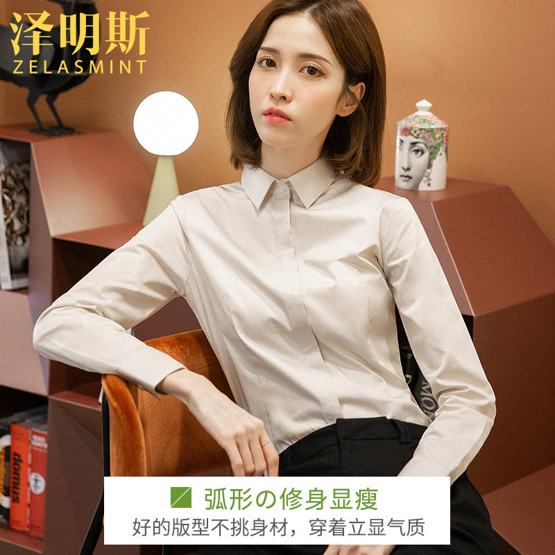 Pink Positive Dress Shirt Woman Long Sleeve 2022 Spring Autumn New Work Jacket Temperament Work Wear Frock White Shirt
