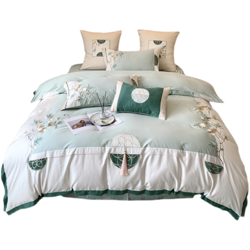 European-style cotton four-piece set Chinese-style 60 long-staple cotton embroidery quilt cover pure cotton pastoral style 1 8m meter bedding