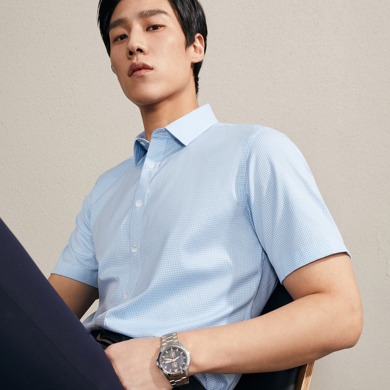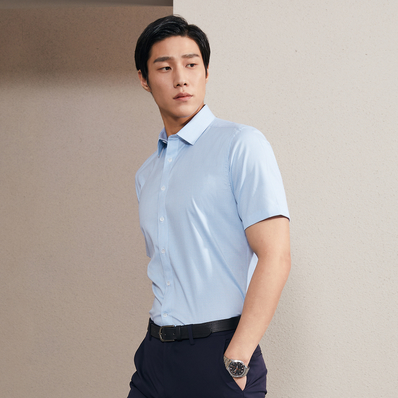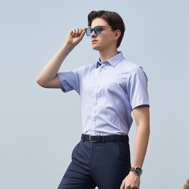Youngor short-sleeved shirt summer new men's business casual bounce DP no-iron small plaid thin shirt 3871