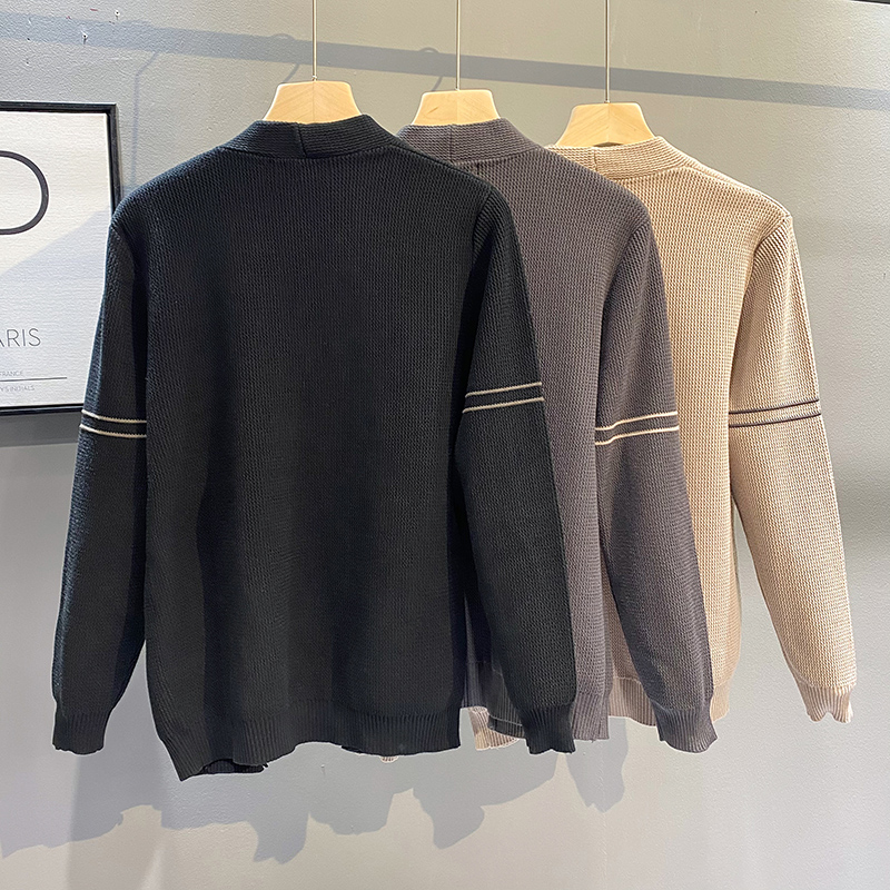 2022 autumn and winter new men's sweater cardigan slim striped stitching jacket casual knitted outer top men's trend