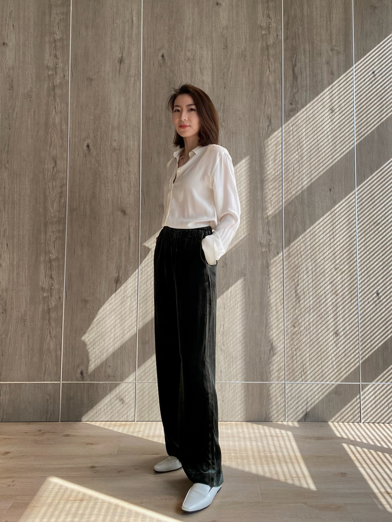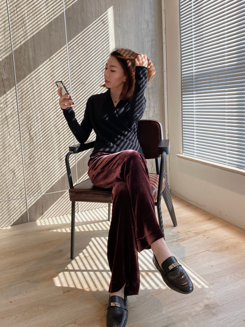Jimmy Fashion Air sense silk velvet smooth drape long legs elastic waist casual pants 2 color ladies spring