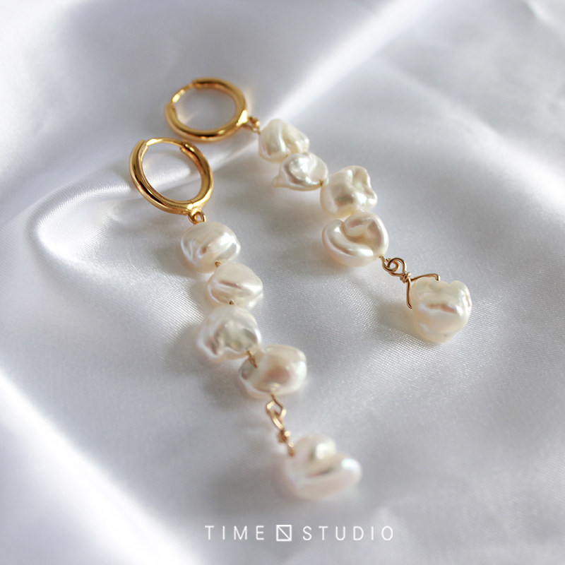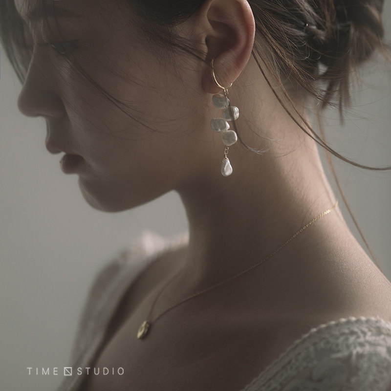 TIME Original {Monet Garden} Baroque Pearl Ear Clip Ear Hook French Retro Sterling Silver Earring Ear Buckle Female