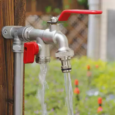 Gardening with valve two-way sub-threaded water dispenser connector 6-point threaded double faucet water dispenser nozzle connector