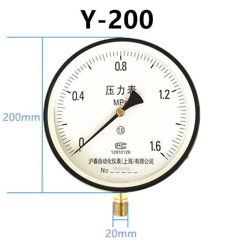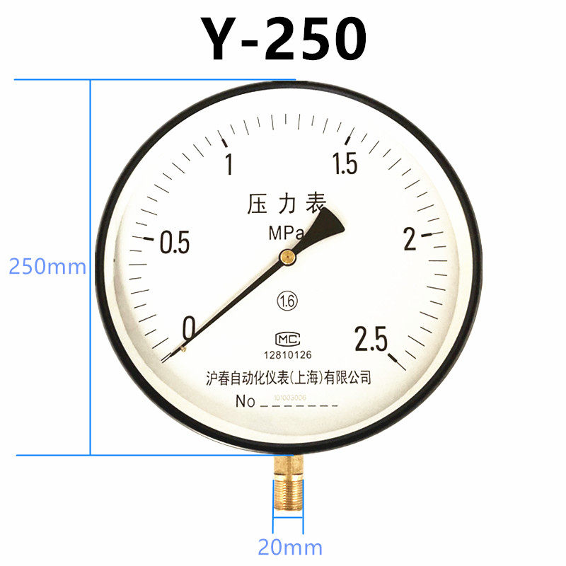 Y200Y250 dial pressure gauge high temperature water pressure steam boiler pressure gauge 0-1 6MPA large surface Huchun