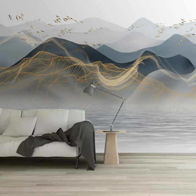 3D New Chinese Modern Living Room Wall Panel Water Ink Landscape Wall Panel China Wind TV Background Wall and Wood Fibreboard