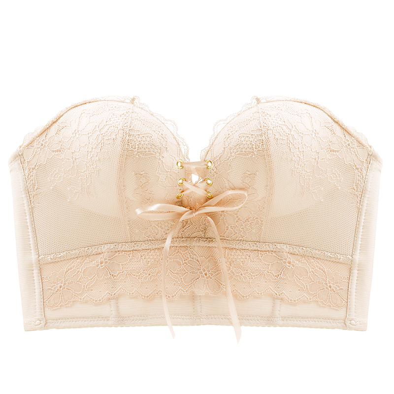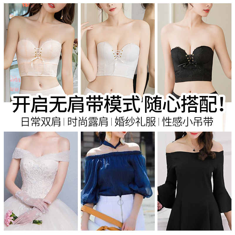 Wedding dress with a wear without a shoulder, a small chest gathering with a breast-proof breast anti-drop-proof slip-wear