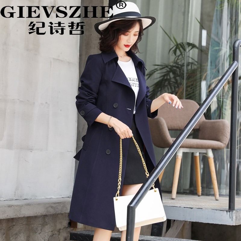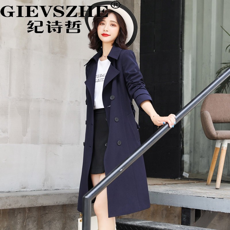 Ji Shizhe windbreaker women's 2022 new spring and autumn small temperament mid-length version of the British wind waist coat coat