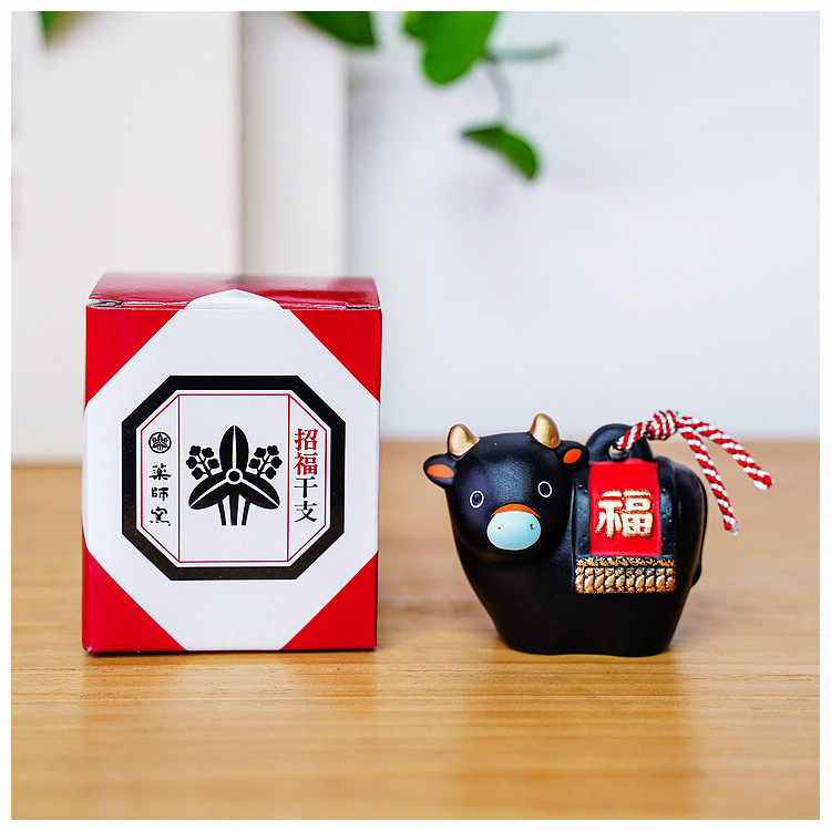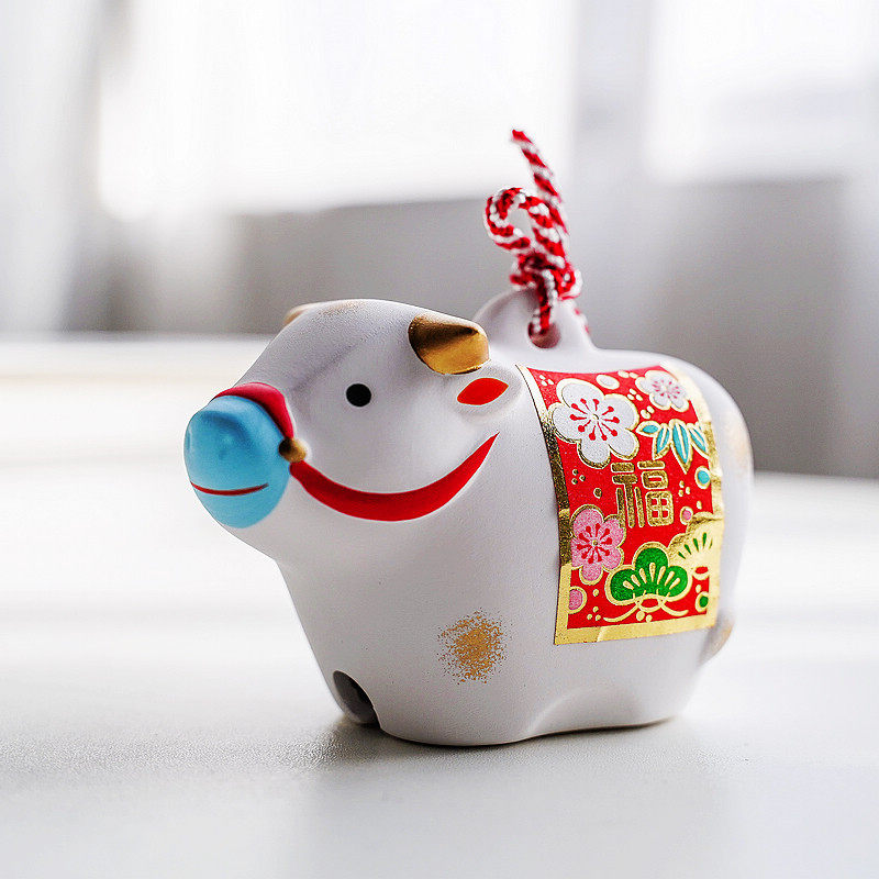 Zhaofu and peace Japanese pharmacist kiln zodiac ox lucky earth bell ornaments home birthday new year mascot car