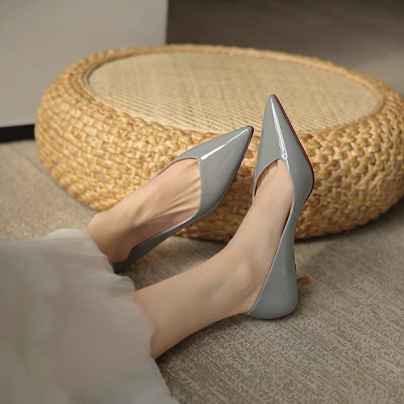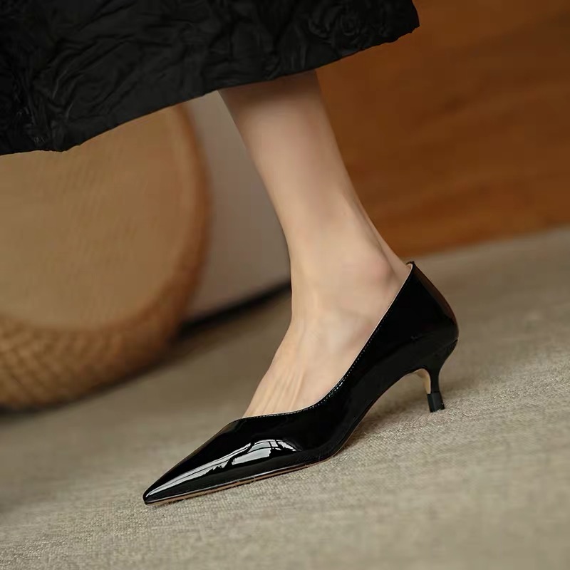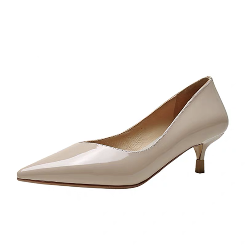 GANAIER STYLE GENTLE WIND ~ CAT HEEL POINTED BAG SHOES WOMAN LIGHT MOUTH LACQUERED LEATHER HEEL HIGH HEEL SHOES NUDE COLOR