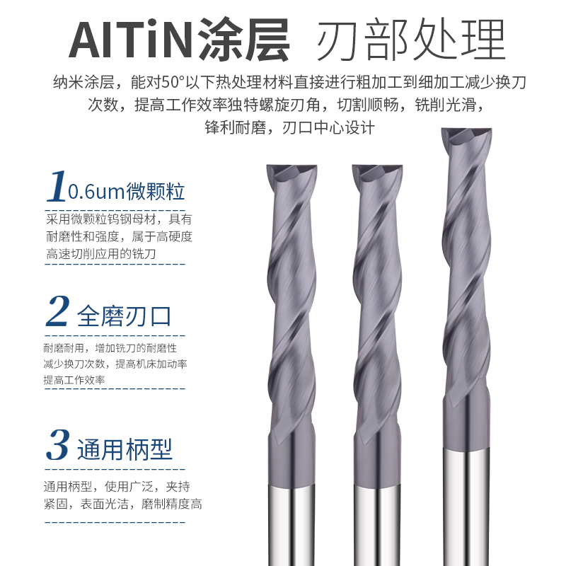 50-degree tungsten steel alloy milling cutter lengthened flat bottom 2-edge coated steel with milling cutter 100120150m m numerical control cutter