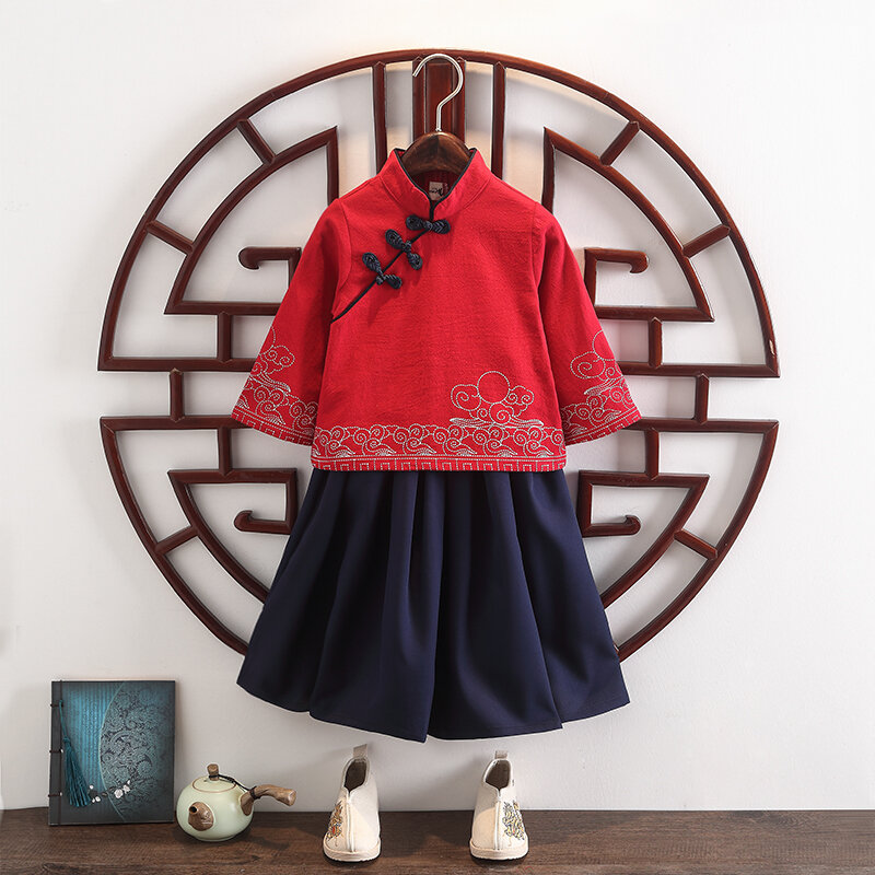 Han Fu Boy Middle Country Wind Spring Fall Girl Super Fairy Ancient Clothes Boy Two Sets Children Retro Performance Suit Suit