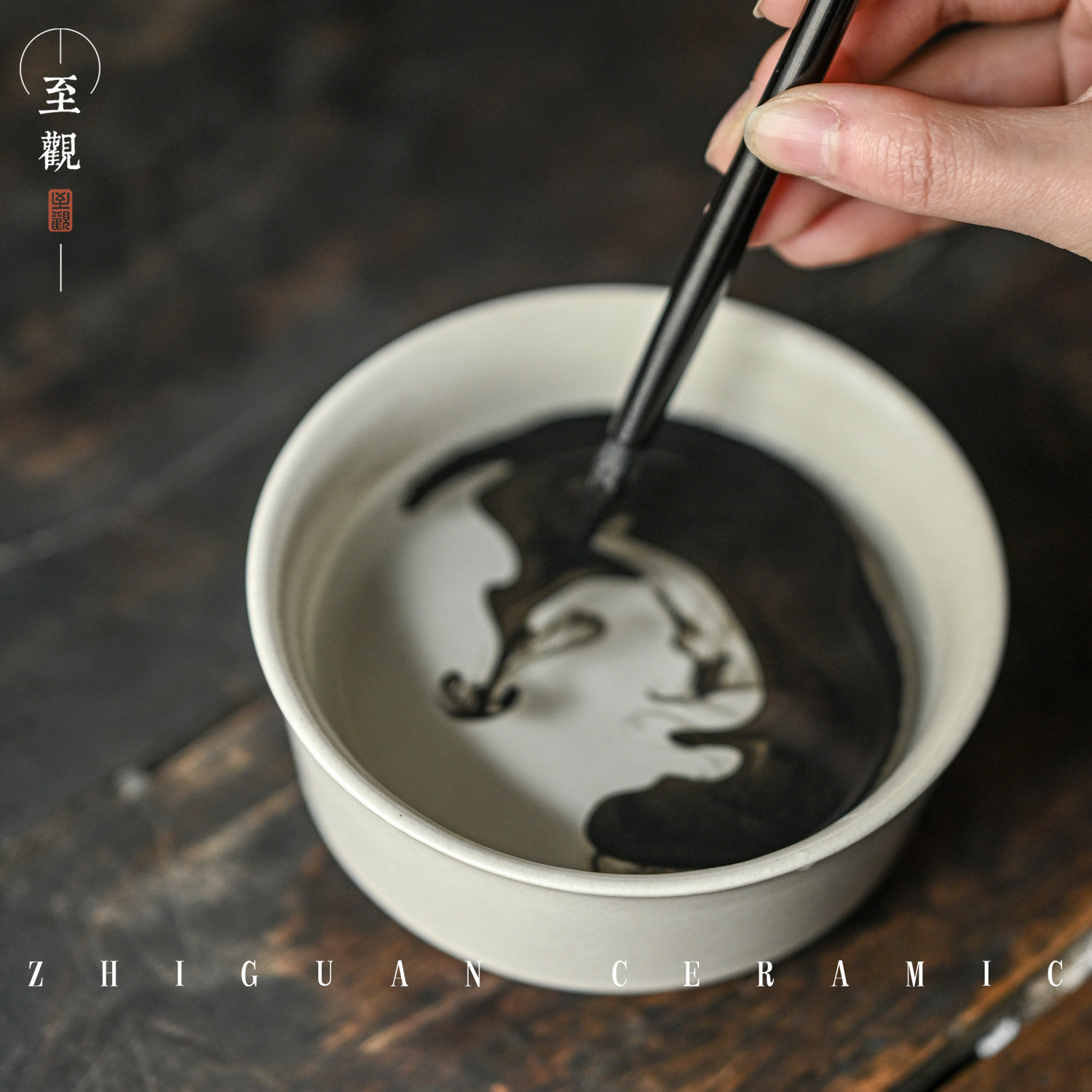 Jingdezhen grass wood grey glazed imitation Song ceramic pen washing and construction Water bearing water in water spittoon Wenfang Four Treasure Students State Painted Supplies