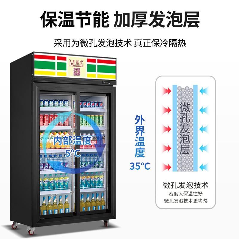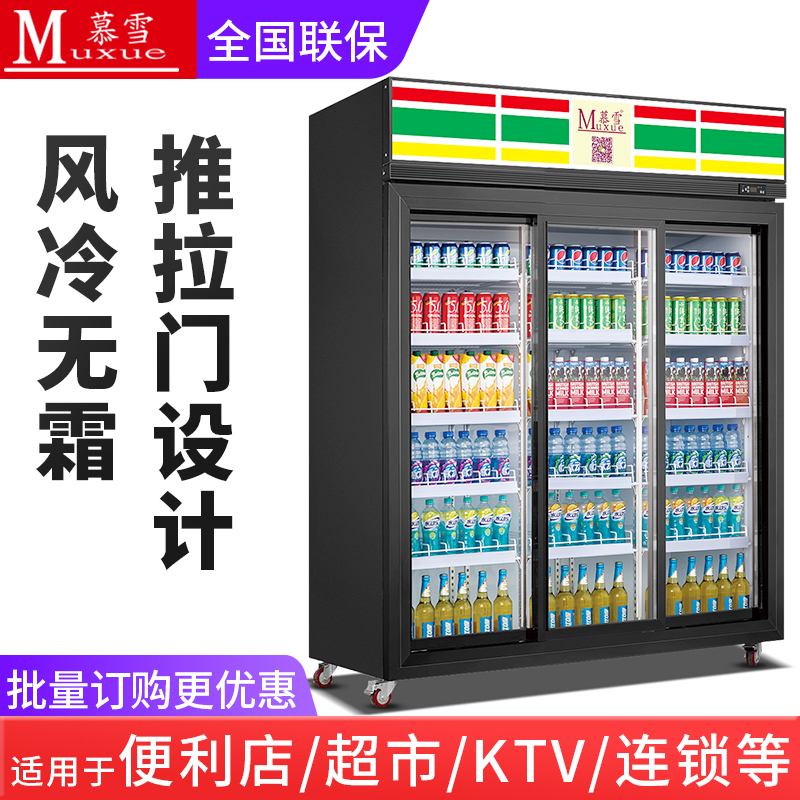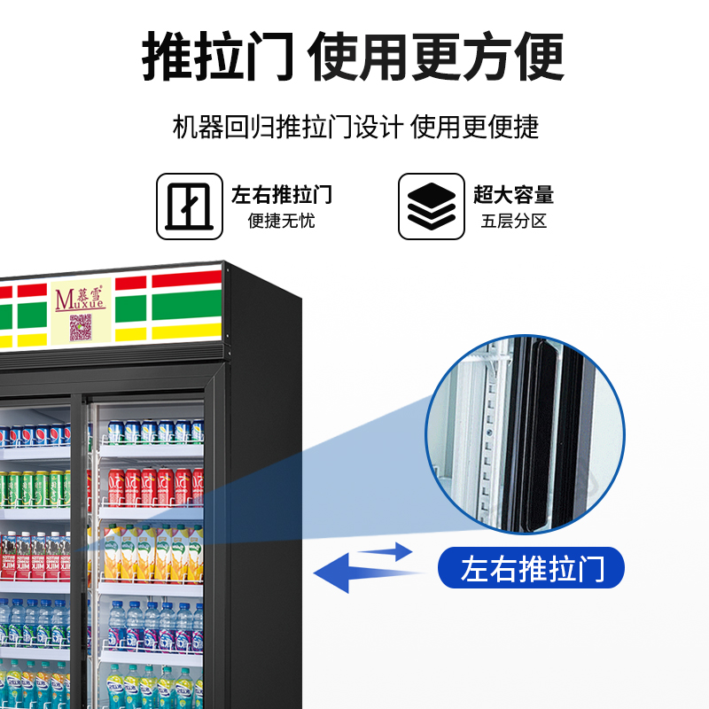 MousSnow left and right Door Drinks Cabinet Air-cooled Frost-free Fruit Ramen Vertical Refrigerated Preservation Cabinet Move Door Display Cabinet