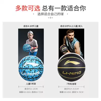 Li Ning Outdoor Basketball No. 7 Adult Professional Competition Basketball No. 5 Cement Floor Children Primary School Students Rubber Ball