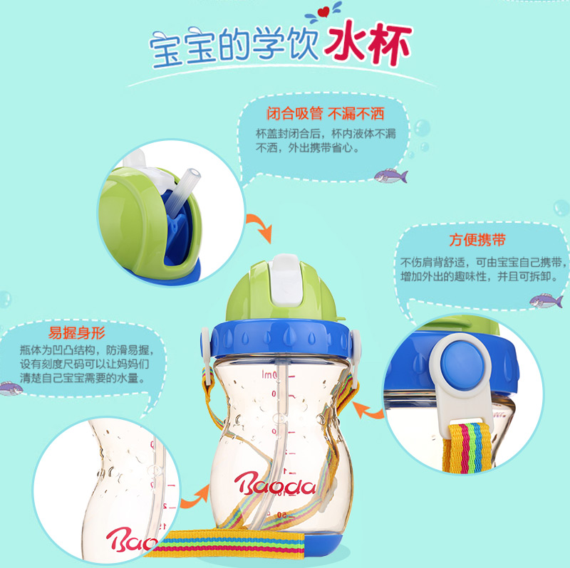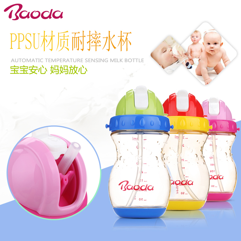 Baode children's PPSU straw water cup big baby leak-proof drop-proof anti-choke learning drink cup drink milk cup after one year old