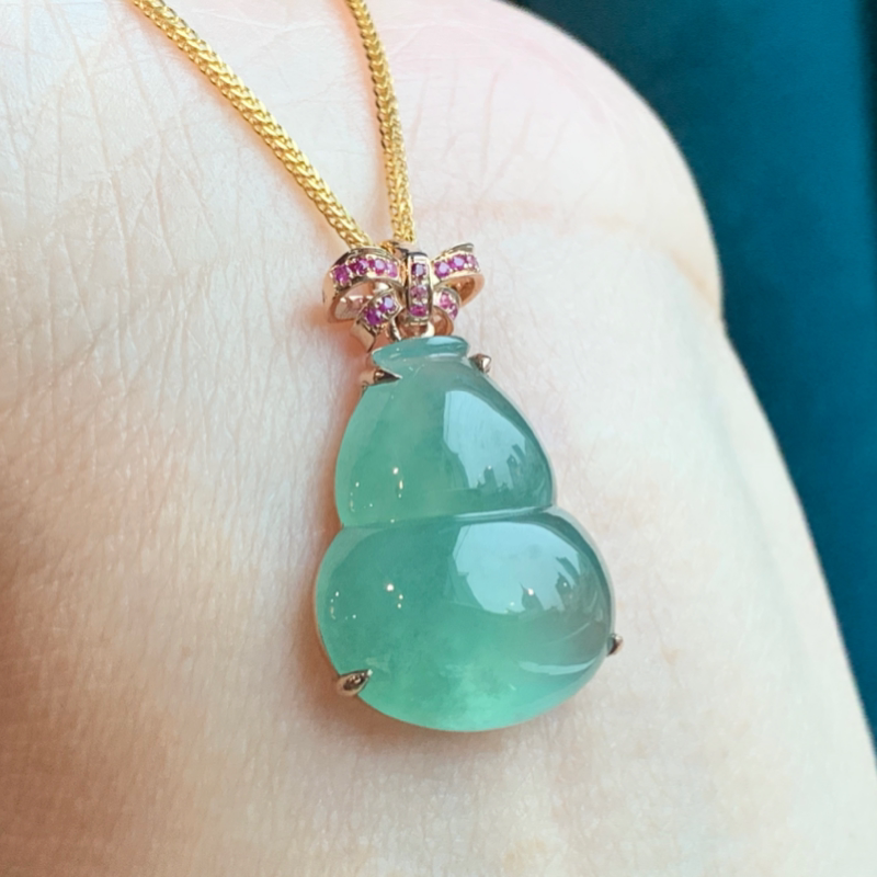 Qincuiyuan Myanmar natural jadeite A goods high ice full green floating flower gourd pendant women's safe pendant 18K gold