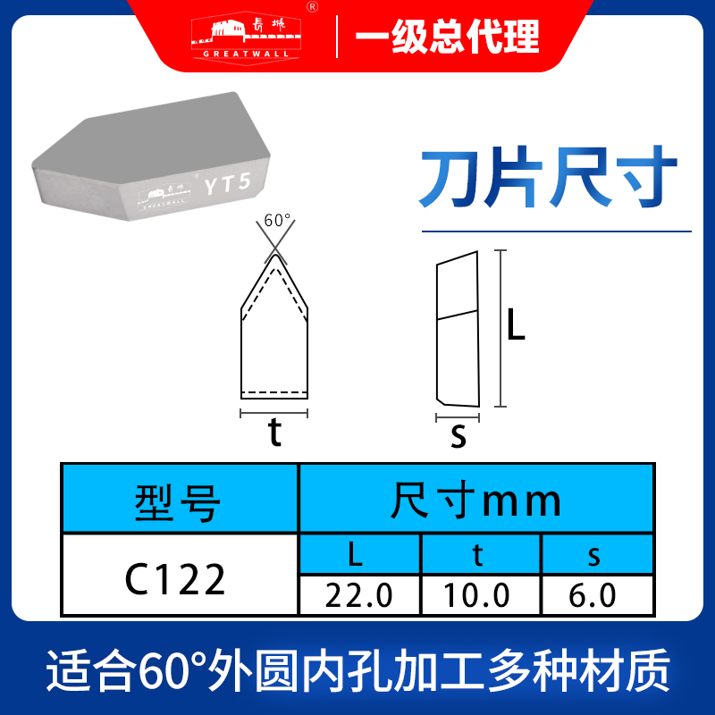Great Wall carbide welding knife head ultra hard lathe stainless steel outer round 60 degrees inner hole thread blade C122