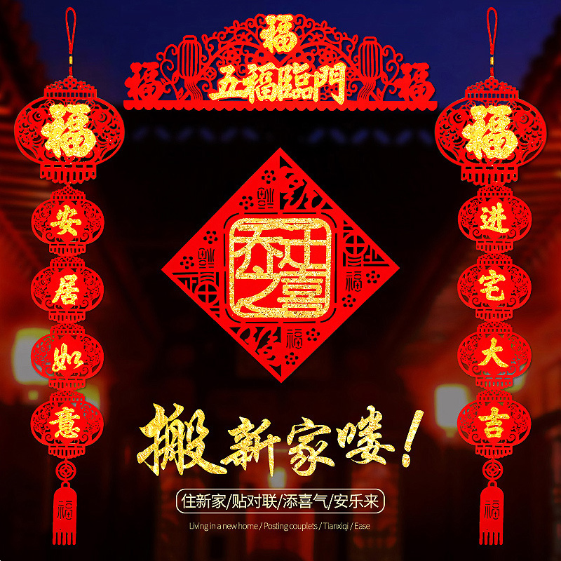 The joy of housewarming set on the Wall of Lianfu Character Door Paste Static Paste New Home New House Into the House Decoration Decoration And Decoration Supplies