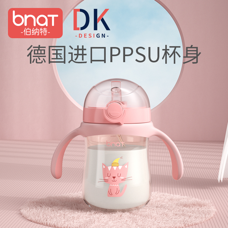 PPSU children's water cup straw cup baby drink water drinking milk cup with scale Milk cup Learn to drink cup home anti-fall