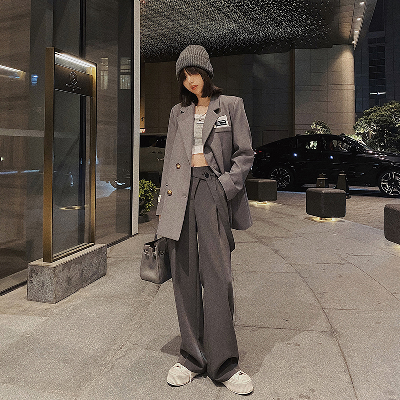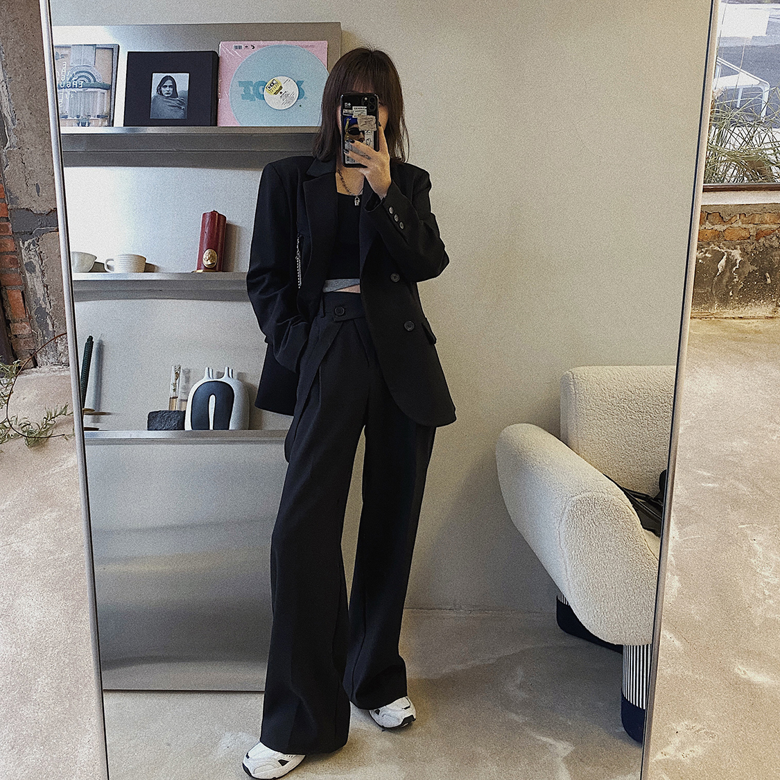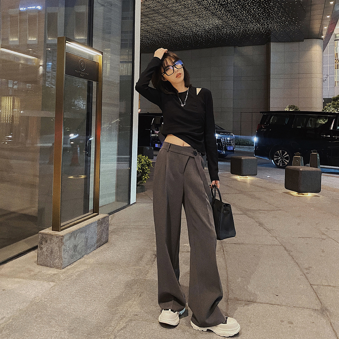 Small Chant Custom Irregular Waist Hanging Strap With High Waist West Clothing Pants 2022 Spring Fall straight cylinder Han version Feeling Broadlegged Pants