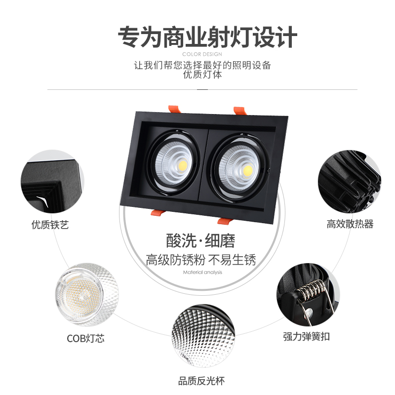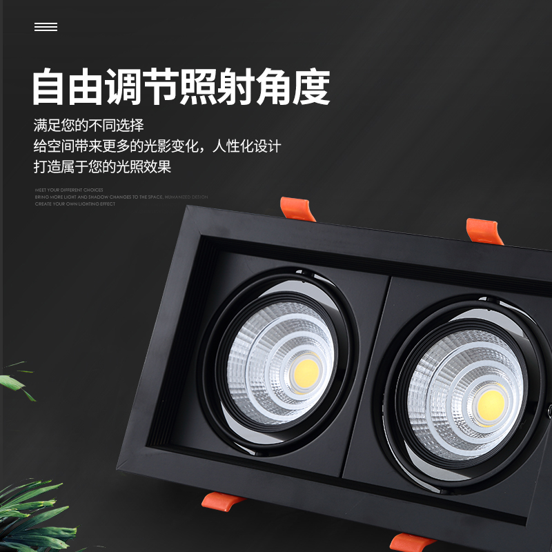 Dare light Double head led embedded four head three head single head square spot light downlight grille light COB bean bile light